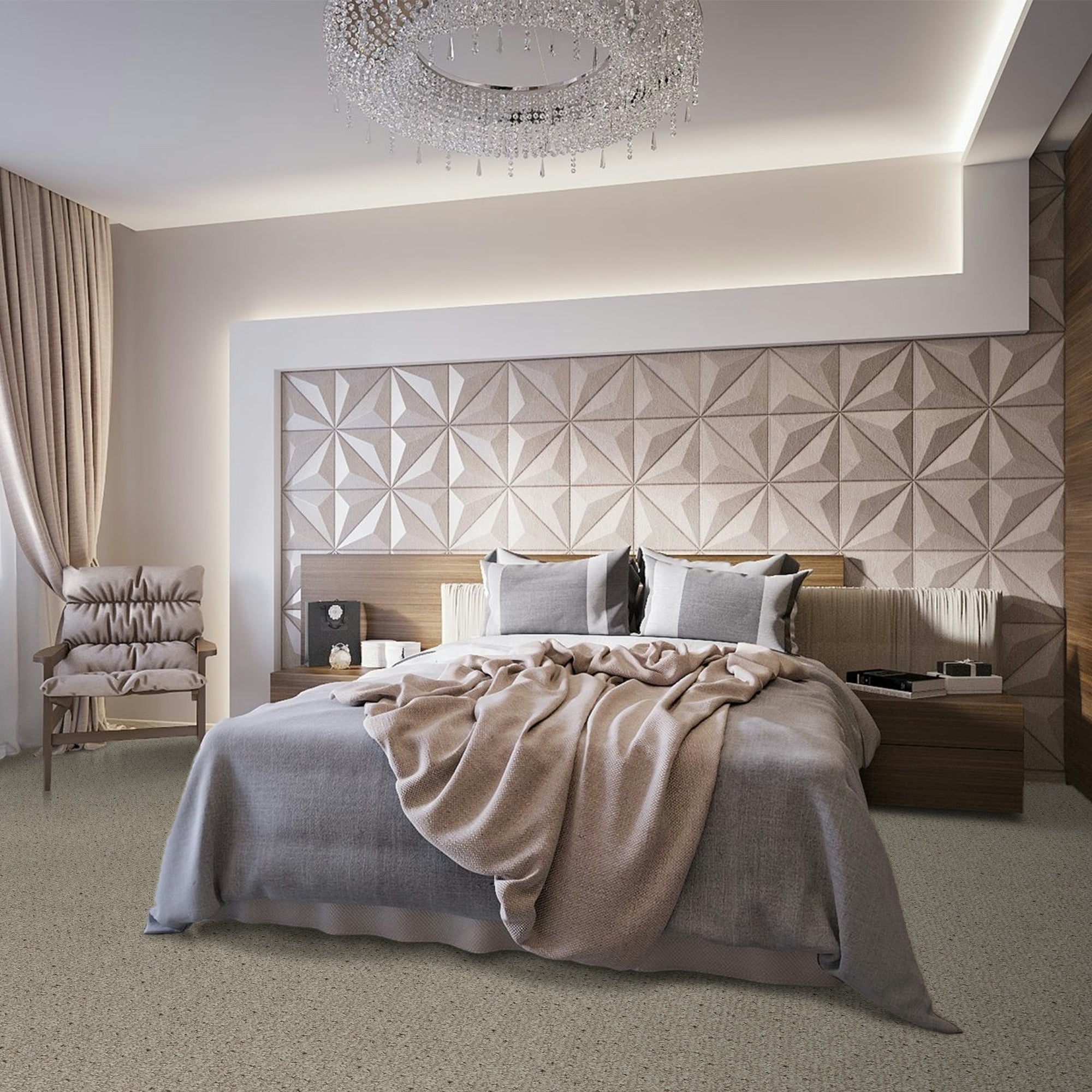 Featured Colours: Iron Frost, Silver Lining (room scene carpet features 'Silver Lining')
